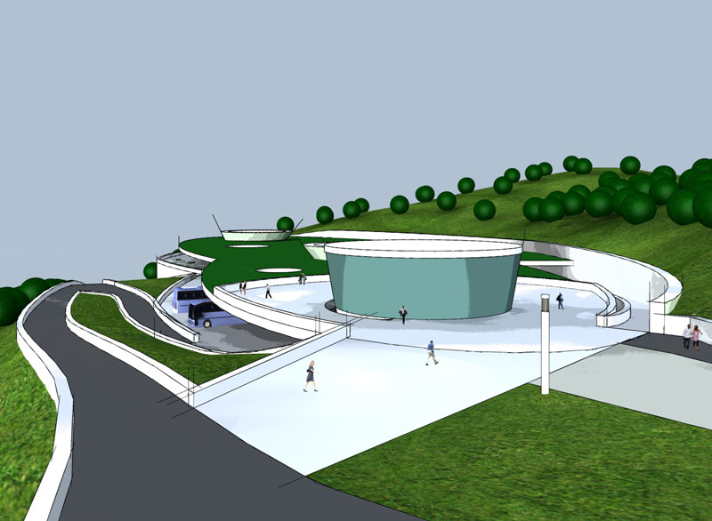 Auftrag bei diesem Wettbewerb war die Neugestaltung der Zufahrt zum Kloster Kreuzberg. Auch der - bisher unattraktive - Parkpatz sollte eine Verschönerungskur erhalten. Im vorgesehenen Rondell sollte die Möglichkeit gegeben werden, einheimische Produkte zu verkaufen, die bisher noch aus dem Kofferraum verkauft wurden.